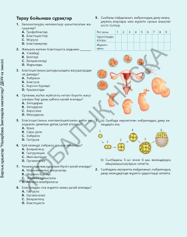 Тарау бойынша сұрақтар 9. Сызбаны пайдаланып, эмбриондық даму кезең-