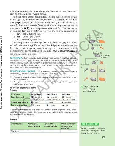 • Анықталған фенотипке сәйкес берілген материалдарды пайдаланып