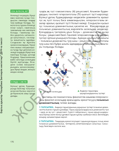 – қара, ал ақ түсі – рецессивті. Суретті пайдаланып, тауық қауырсындары-