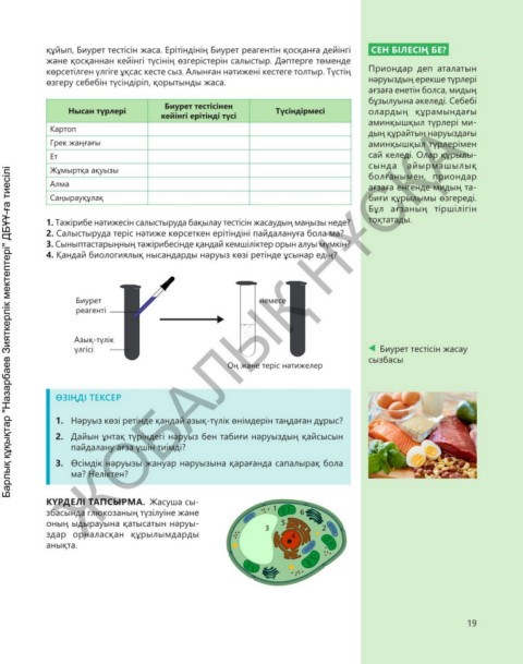 құйып, Биурет тестісін жаса. Ерітіндінің Биурет реагентін қосқанға дейінгі СЕН БІЛЕСІҢ БЕ?