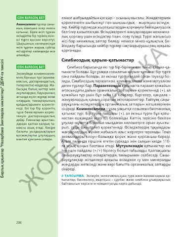 СЕН БІЛЕСІҢ БЕ? Симбиоз барысында екі түр бір-бірімен өте тығыз қарым-қа-