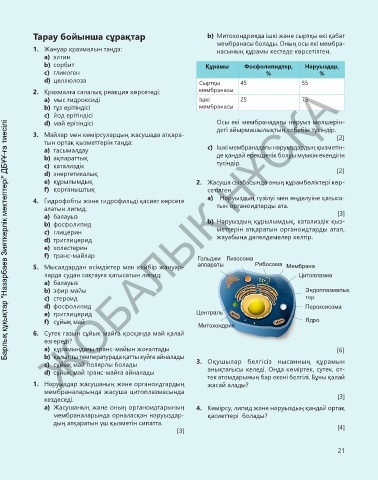 Тарау бойынша сұрақтар b) Митохондрияда ішкі және сыртқы екі қабат