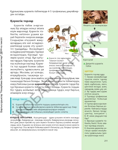 тышқандар басым болады. Экожүйедегі қоректік тізбектердің тізімі көрсетілген: түлкі,