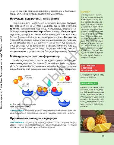 үдерісін нақты ферменттерді пайдалана отырып түсіндір. Ол үшін кестедегі