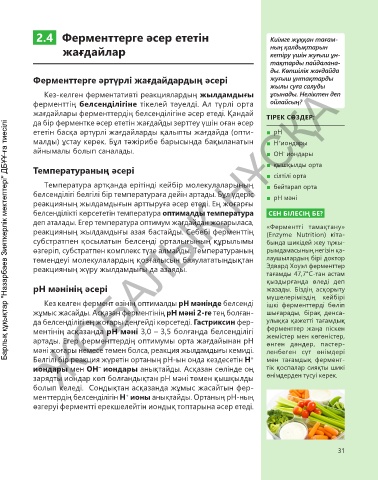 өзгеруі ферментті ерекшелейтін иондық топтарына әсер етеді.