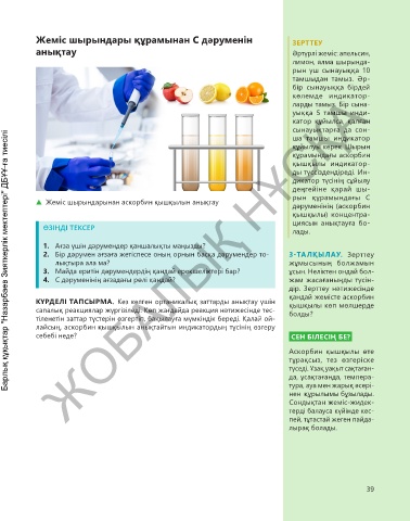 ▲ Жеміс шырындарынан аскорбин қышқылын анықтау