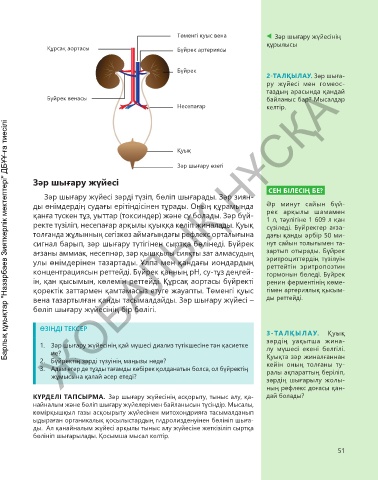 қанға түскен тұз, уыттар (токсиндер) және су болады. Зәр бүй- рек арқылы шамамен