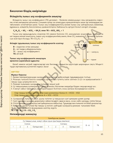 екі газдың көлемі анықталса, тыныс алу коэффициентінің мәнін, яғни СО көлемінің О көлеміне қатына-