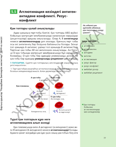 1-ТАПСЫРМА. Суретте қан топтарының антигендермен анықталуының ■ резус-фактор